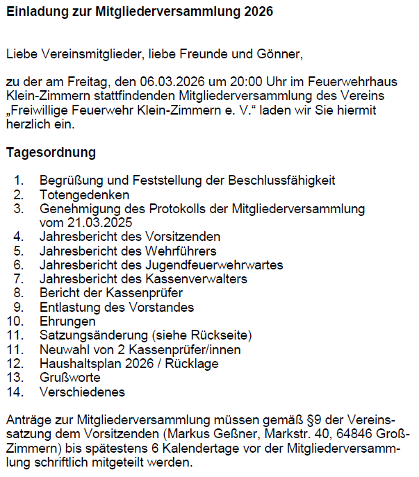 Einladung zur Mitgliederversammlung am 08.03.2026