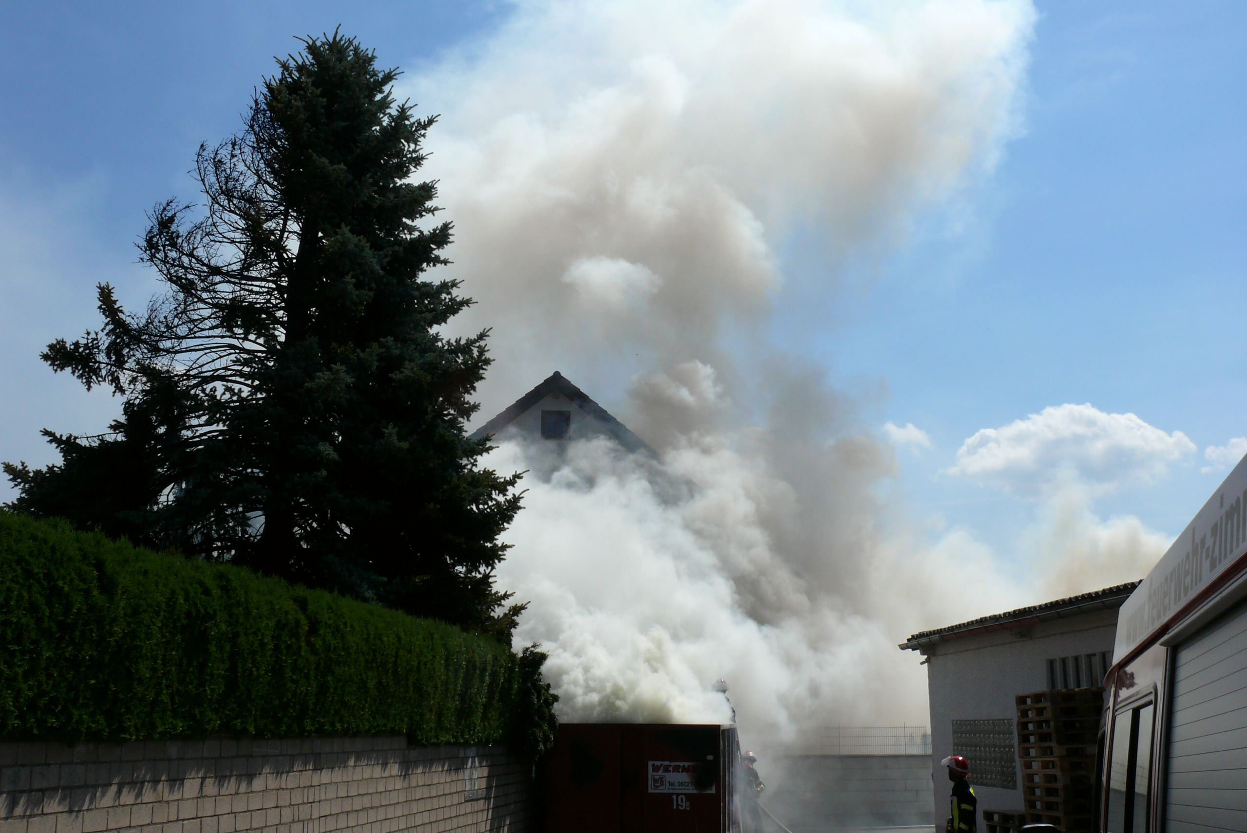 Einen sich schnell ausbreitenden Heckenbrand musste die Freiwillige Feuerwehr Groß-Zimmern am Donnerstagvormittag bekämpfen. Gemeldet worden war das Feuer im Gehrenweg gegen 11:15 Uhr. Der Freiwilligen Feuerwehr schlugen beim Eintreffen wenige Minuten später meterhohe Flammen entgegen. Eine Thujahecke brannte auf 18 Metern Länge. Die Einsatzkräfte leiteten umgehend einen Löschangriff mit dem Tanklöschfahrzeug TLF20/40SL ein. Das Löschgruppenfahrzeug LF16/12 wurde zum Löschangriff von der Rückseite in den Ober-Ramstädter Weg beordert. Starker Funkenflug begünstigte währenddessen die Ausbreitung des Brandes auf einen etwa 10 Meter entfernten Container. Von diesem wiederum griff das Feuer auf eine weitere Tuhja-Hecke sowie eine hohe Tanne über. Einsatzleiter Marcus Paschke lies daher zur Unterstützung die Feuerwehren Klein-Zimmern und wenig später die Feuerwehr Dieburg alarmieren. Mit vereinten Kräften konnten die mittlerweile zwei Brandstellen gelöscht werden. Neben 4 C-Rohren und einem B-Rohr für die Bekämpfung der Heckenbrände kam zum Löschen des Containers Schaummittel zum Einsatz. Die Feuerwehr bittet darum, beim Einsatz von Gasbrennern oder anderen Feuerquellen zur Unkrautvernichtung bei der aktuellen trockenen Wetterlage besondere Vorsicht walten zu lassen!