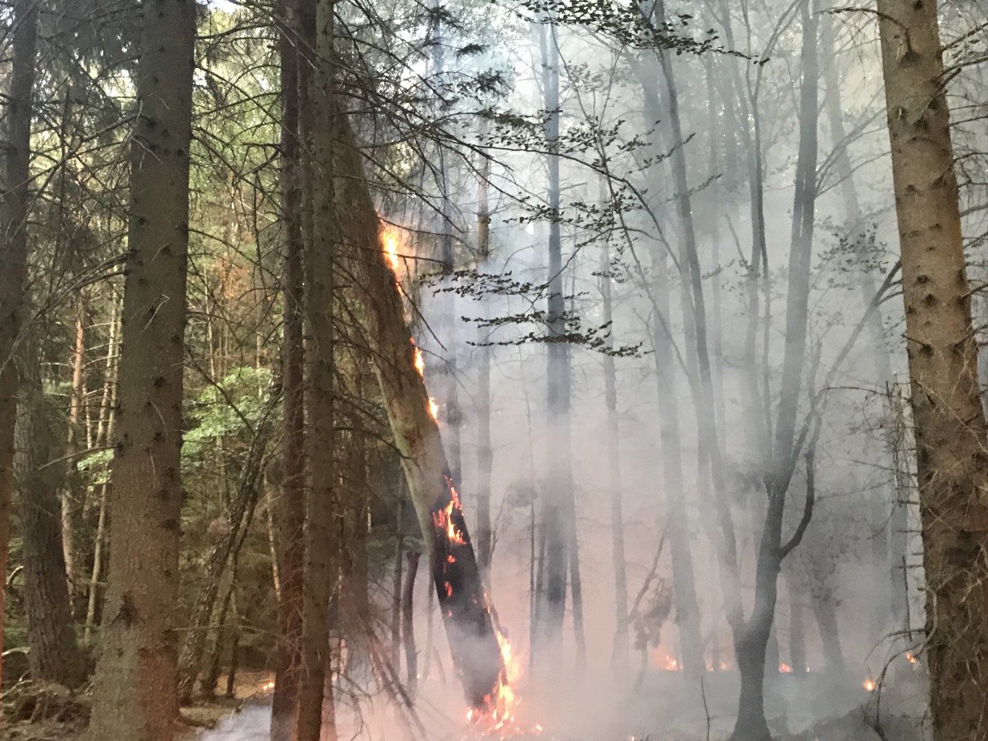 Am Samstagabend wurde die Freiwillige Feuerwehr Groß-Zimmern gegen 18:35 Uhr zu einem Waldbrand alarmiert. Rund 30 Minuten zuvor war bereits die Freiwillige Feuerwehr Dieburg alarmiert worden. Während der Erkundung zusammen mit einem Polizeihubschrauber wurde der Brand auf Groß-Zimmerner Gemarkung lokalisiert. An der Einsatzstelle zeigte sich einen Brand in einem Mischwald auf einer Fläche von rund 300 m². Auf Basis dieser Lage wurde das Alarmstichwort erhöht, was zu Alarmierung der Feuerwehren Klein-Zimmern und Groß-Umstadt mit Tanklöschfahrzeug führte. Das Feuer in der Abteilung 43 zwischen Viehtrieb und Grenzschneise wurde von zwei Seiten durch die Feuerwehren Dieburg und Groß-Zimmer bekämpft. Hierzu kamen mehrere D- und C-Rohre zum Einsatz. Die Wasserversorgung wurde im Pendelverkehr durch die Tanklöschfahrzeuge aus Groß-Umstadt und Groß-Zimmern sichergestellt. Darüber hinaus sorgte das Tanklöschfahrzeug aus Dieburg für die Wasserversorgung der Dieburger Einsatzkräfte. Die Feuerwehr Dieburg schlug zusätzlich eine rund 500 Meter lange Brandschneise um die Ausbreitung zu verhindern. Weitere Bäume mussten im Verlauf der Löscharbeiten ebenfalls gefällt werden. Im Einsatz waren 67 Kräfte der Feuerwehren sowie 10 Kräfte des Versorgungszuges der Johanniter-Unfallhilfe Dieburg. Diese stellten die medizinische Versorgung der Einsatzkräfte sowie die Verpflegung sicher. Geleitet wurde der Einsatz vom Groß-Zimmerner Gemeindebrandinspektor James Bennett in Zusammenarbeit mit Standbrandinspektor Carsten Hammer (Dieburg). Kreisbrandinspektor Heiko Schecker sowie ein Mitarbeiter von Hessenforst machten sich vor Ort ein Bild der Lage.