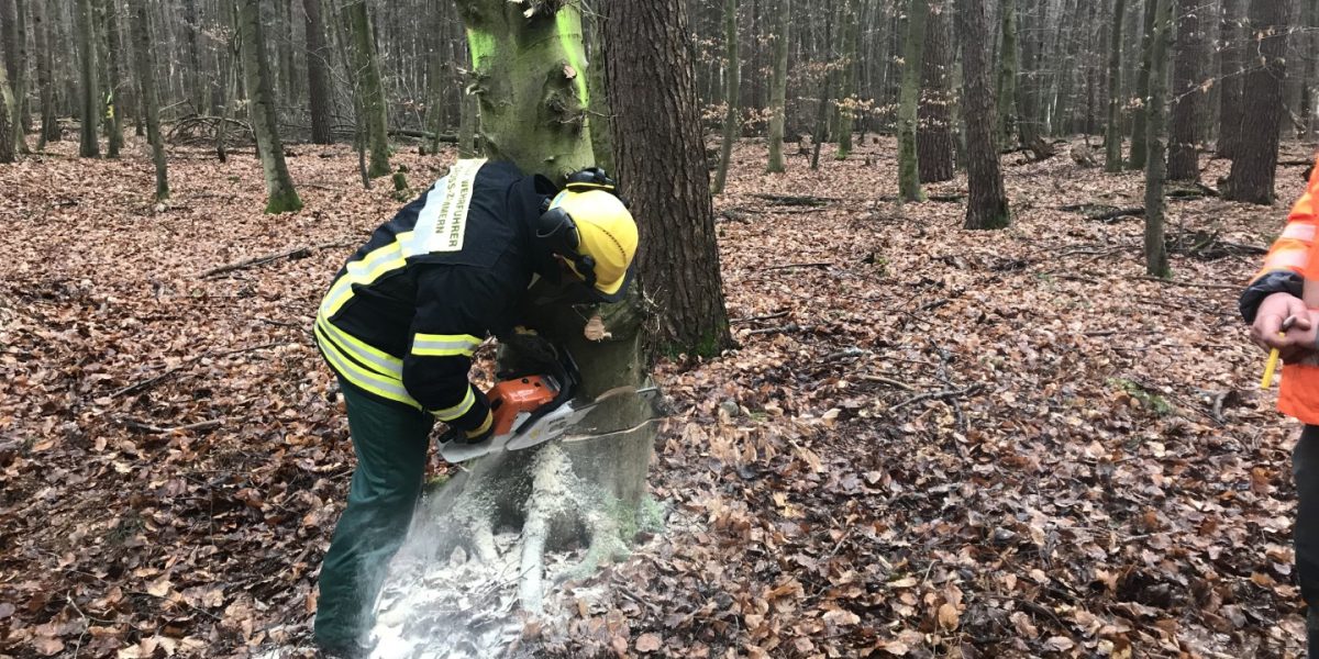 Schwerpunkt der diesjährigen Schulung stellte das Fällen zuvor von der Forstverwaltung ausgewählter Bäume im Groß-Zimmerner Wald dar. Das Fällen von Bäumen oder Zerlegen umgefallener Baumstämme ist für die Feuerwehr eine regelmäßige Aufgabe im Rahmen von Unwettereinsätzen; beispielsweise wenn Bäume nach einem Sturm auf einer öffentlichen Straße liegen oder drohen auf diese zu stürzen. Unter der Leitung des Bauhof-Mitarbeiters und Feuerwehrmanns Karl-Heinz Knöll, wurden insgesamt 16 Einsatzkräfte fortgebildet. Knöll ist staatlich geprüfter Fachagrarwirt für Naturschutz und Landschaftspflege sowie Ausbilder für den Umgang mit der Motorsäge. Unterstützt wurde Knöll dabei von Karl-Heinz Selmes-Ohl (ebenfalls Mitarbeiter des Bauhofs und Feuerwehrmann). Für die Verpflegung der Teilnehmer im Wald während der Fortbildung sorgten die Feuerwehrleute Thomas Heine, Sascha Kleiser. Unterstützt wurden sie dabei von Laura Grimm und Bianca König. Die Feuerwehr Groß-Zimmern möchte sich bei allen bedanken, die diesen Tag möglich gemacht haben. Feedback der Teilnehmer: "Wie bereits in den vergangenen Jahren war auch diese Fortbildung wieder eben so lehrreich wie spannend".