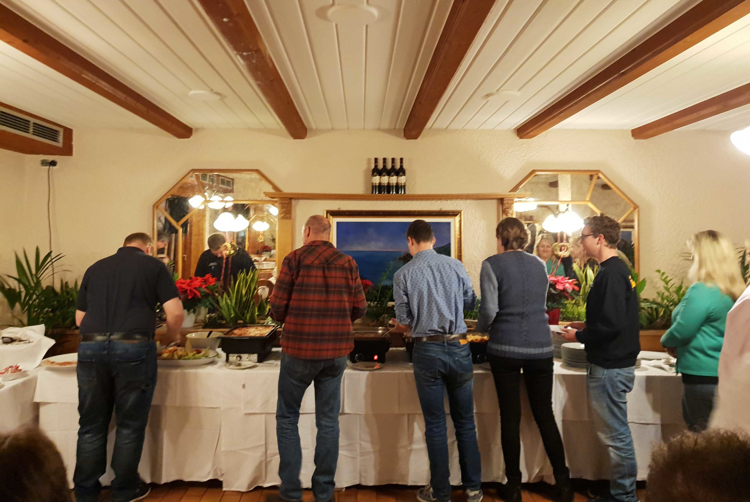 Nach einer Stärkung am wohlschmeckenden Buffet mit ganzen Puten wurde durch den Guggugg aus Spachbrücken der Abend etwas kurzweiliger gestaltet. Im Anschluss wurden wie in den vergangenen Jahren alle Mitglieder der Einsatzabteilung die die geforderten Unterrichtsstunden im laufenden Jahr erreicht haben mit einem kleinen Präsent belohnt.